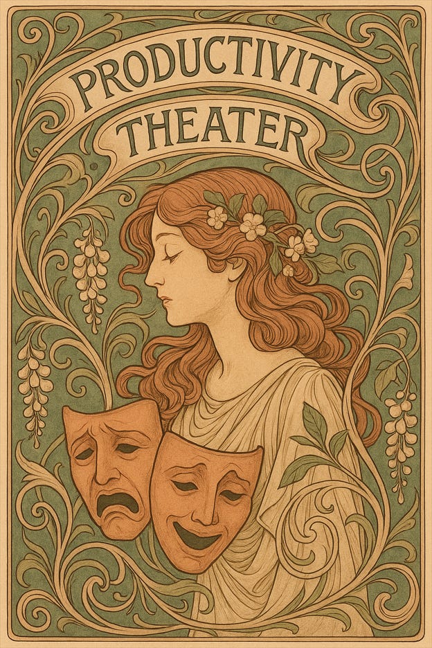 "It's why we gather in office buildings using the same 40-hour work weeks originally developed for limiting the physical fatigue of factory labor. And why we feel guilty about ignoring our inboxes. [...] It's safer to chime in on email threads and jump on calls than to put your head down and create a bold new strategy."